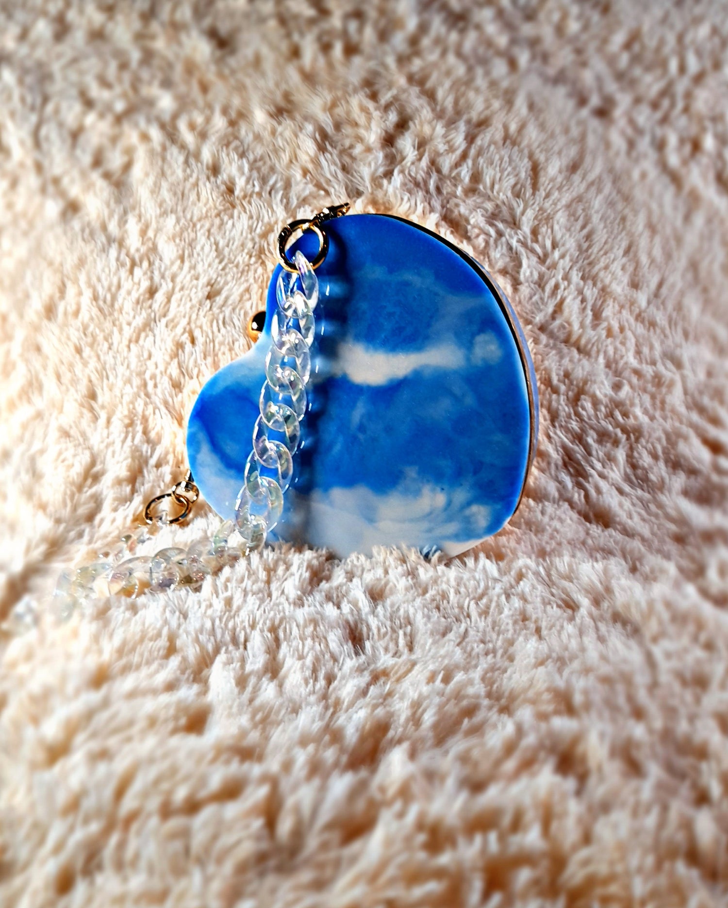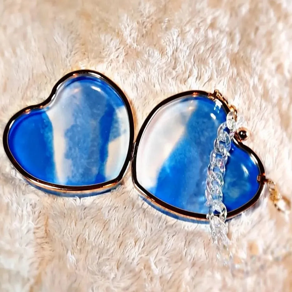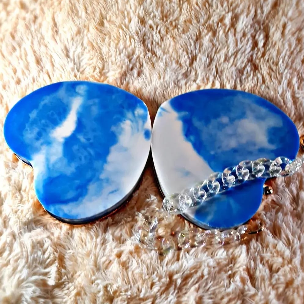 Heart Shaped Handmade Resin Clutch Purse using Non-toxic resin that has the durability to last up to 25 years.(1)Gold Strap/Purse chain included with purchase.Clear Acrylic Purse strap(in photo) sold separately on website.