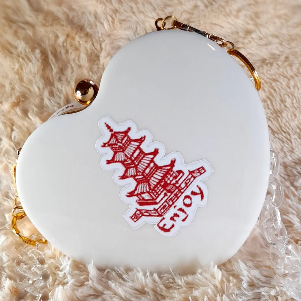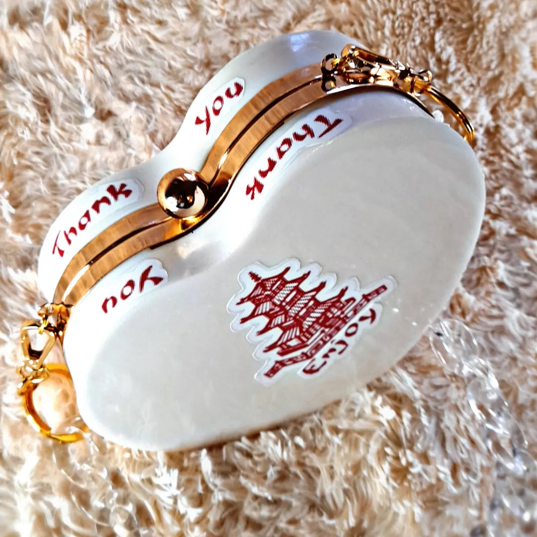 Heart Shaped Handmade Resin Clutch Purse using Non-toxic resin that has the durability to last up to 25 years.(1)Gold Strap/Purse chain included with purchase. Clear Acrylic Purse strap(in photo) sold separately on website.