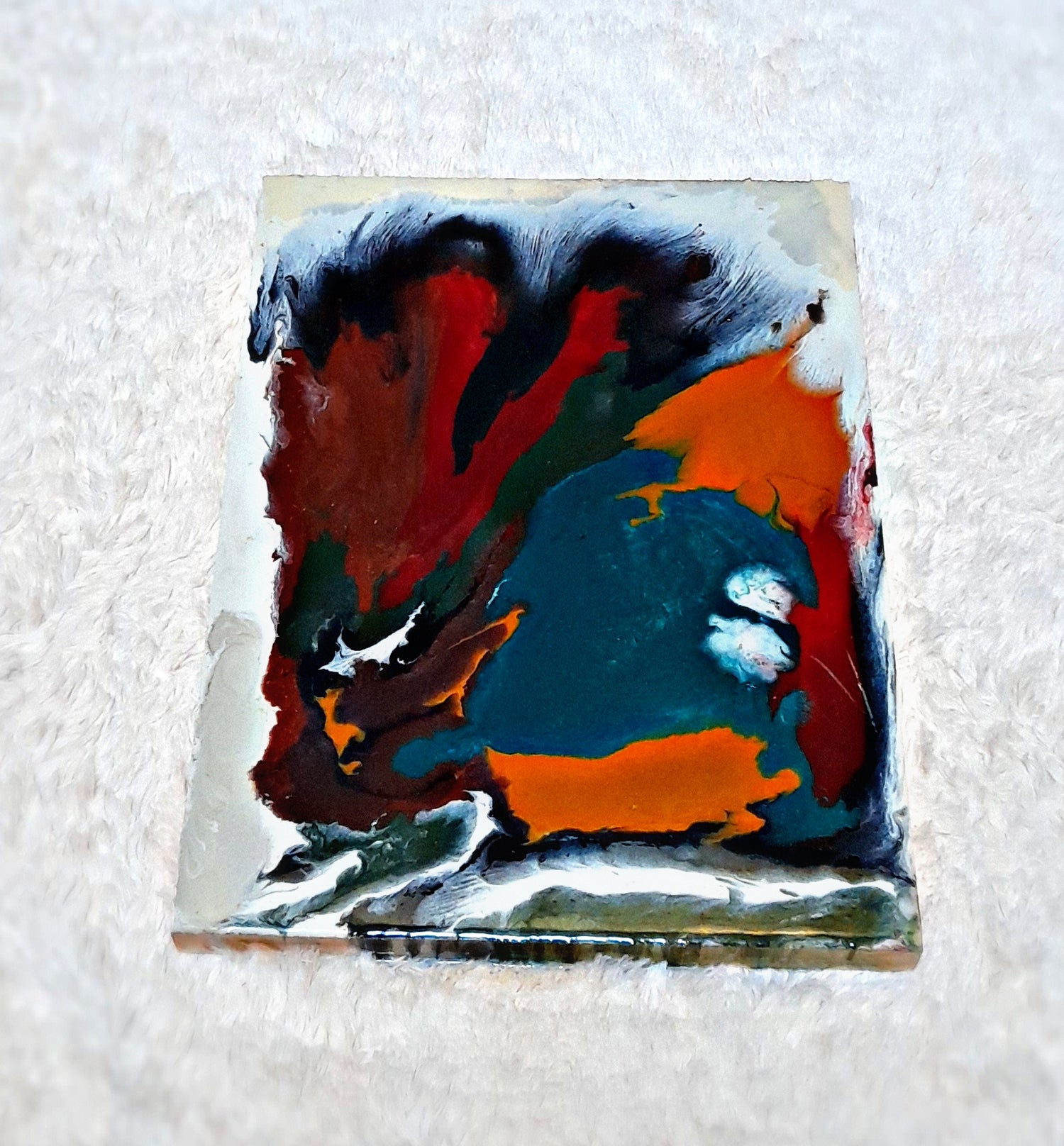 Resin Art is created when a runny chemical called epoxy resin is combined with various colour pigments and additives to produce a blend of unique patterns and textures. The resin mixture gradually hardens (when mixed with a hardener) to a solid plastic as a chemical reaction between its components takes place.