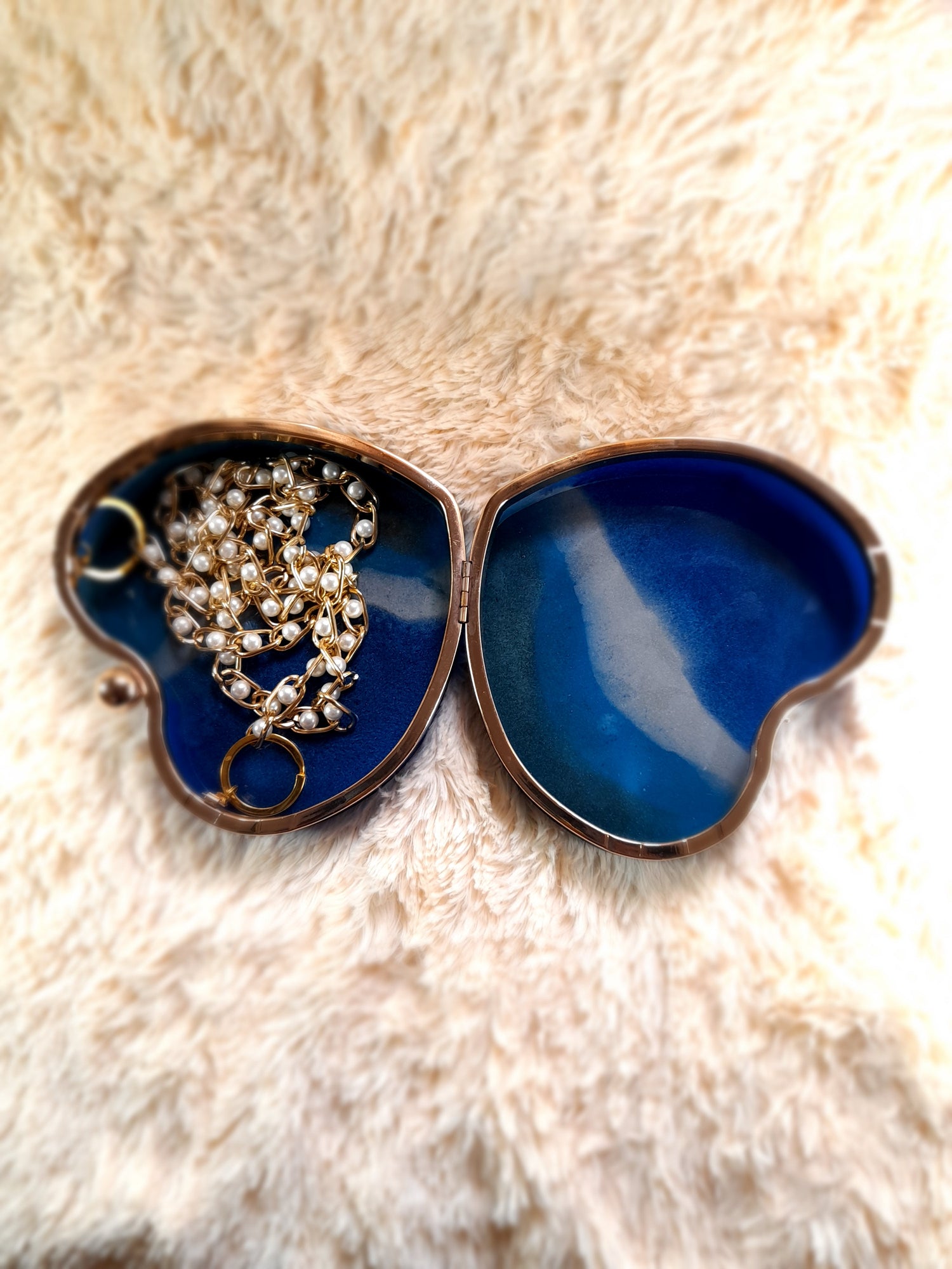 Heart Shaped Handmade Resin Clutch Purse using Non-toxic resin that has the durability to last up to 25 years.(1)Gold Strap/Purse chain included with purchase. Clear Acrylic Purse strap(in photo) sold separately on website.