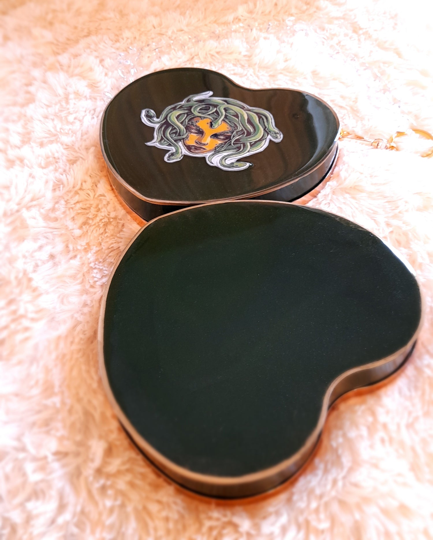 Heart Shaped Handmade Resin Clutch Purse using Non-toxic resin that has the durability to last up to 25 years.(1)Gold Strap/Purse chain included with purchase.Clear Acrylic Purse strap(in photo) sold separately on website.