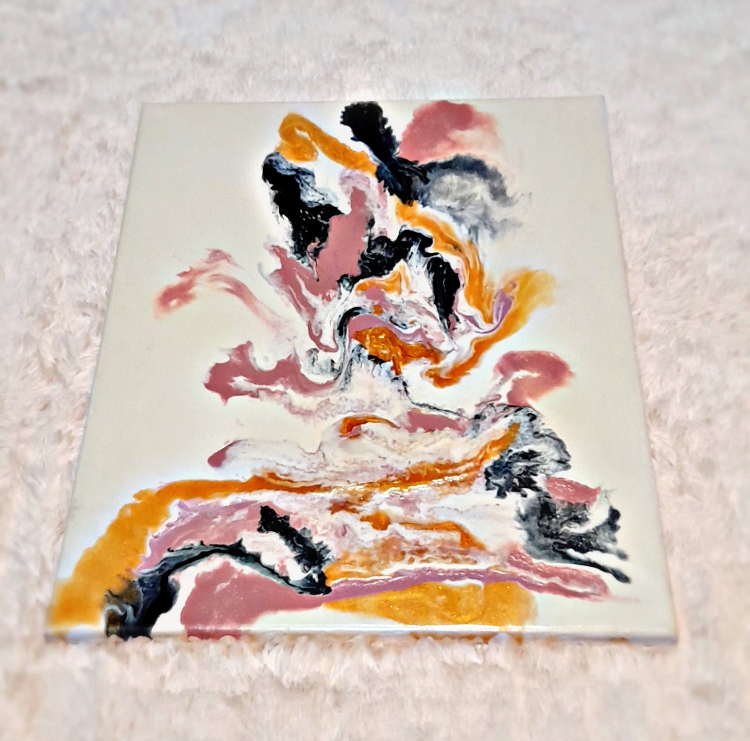 Resin Art is created when a runny chemical called epoxy resin is combined with various colour pigments and additives to produce a blend of unique patterns and textures. The resin mixture gradually hardens (when mixed with a hardener) to a solid plastic as a chemical reaction between its components takes place.