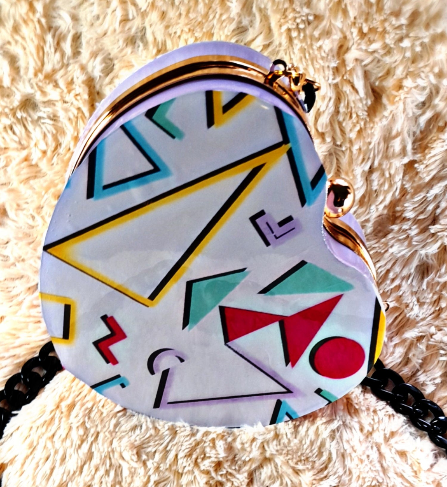 Heart Shaped Handmade Resin Clutch Purse using Non-toxic resin that has the durability to last up to 25 years.(1)Gold Strap/Purse chain included with purchase. Clear Acrylic Purse strap(in photo) sold separately on website.